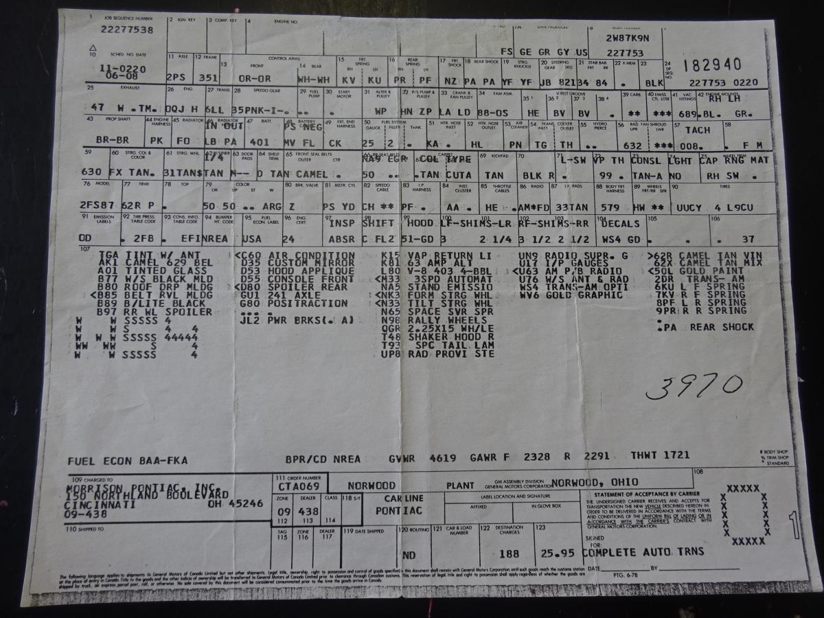 1979 Pontiac Firebird Trans Am 403 V8 29.000 Miles